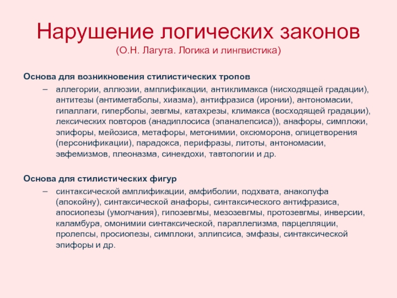антитезы (антиметаболы, хиазма), антифразиса (иронии), антономасии, гипаллаги, гиперболы, зевгмы, катахрезы,