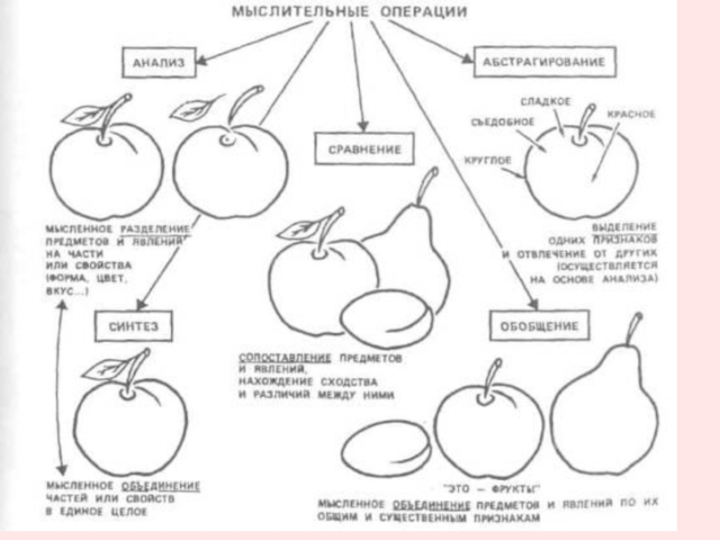 3) мысленное воссоединение элементов в целостную структуру (синтез);