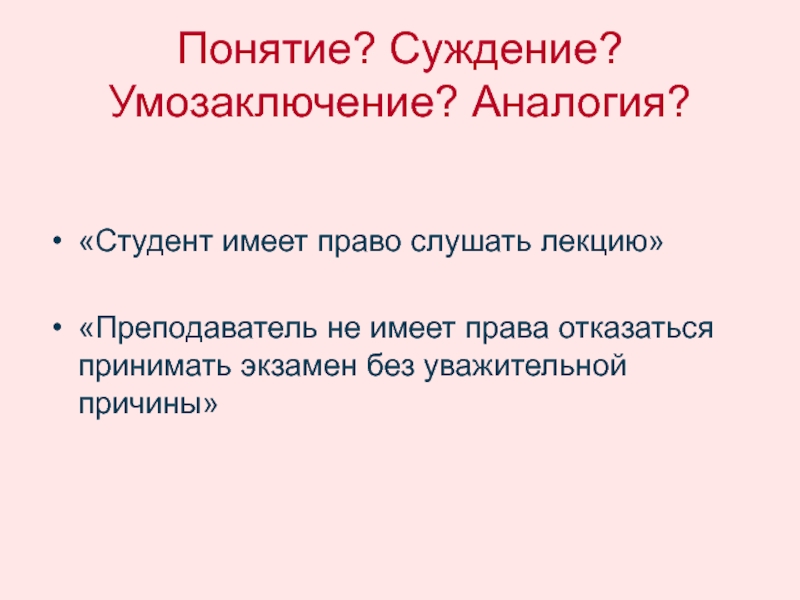 Слайд 26Понятие? Суждение? Умозаключение? Аналогия?