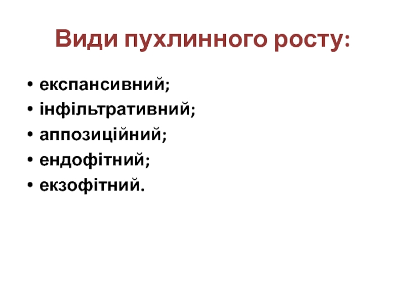 виразковий, ендофітний, інфільтративно-виразковий, дифузний.