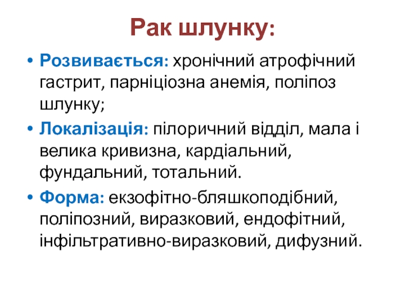 Розвивається: хронічний атрофічний гастрит, парніціозна анемія, поліпоз шлунку;