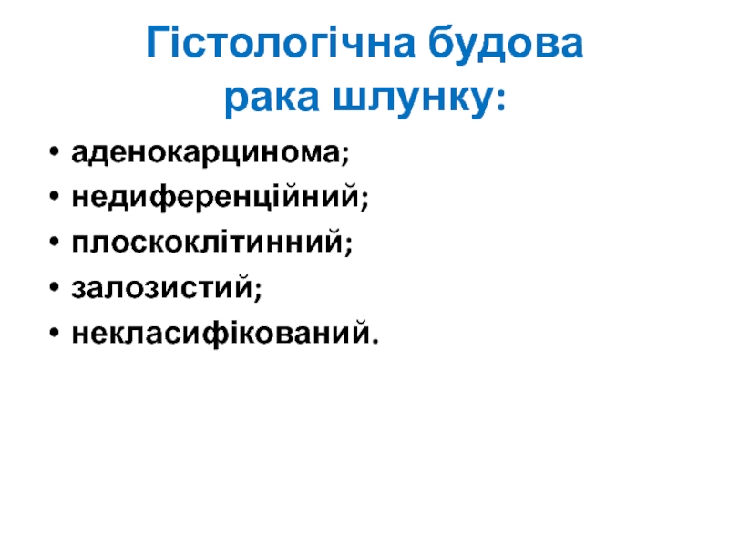Мікроскопічно: плоскоклітинний, аденокарцинома, недиференційований,