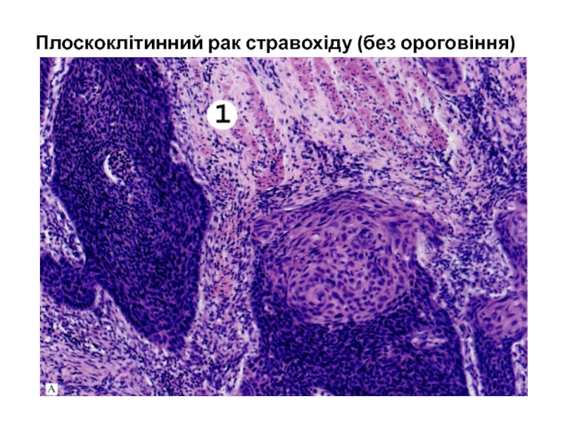 Слайд 32Плоскоклітинний рак стравохіду (без ороговіння)