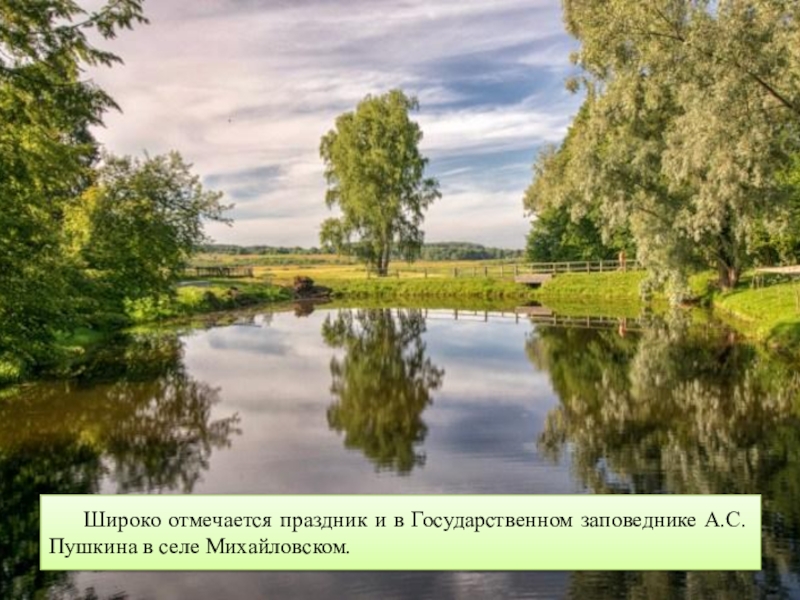Широко отмечается праздник и в Государственном заповеднике А.С. Пушкина в селе Михайловском.