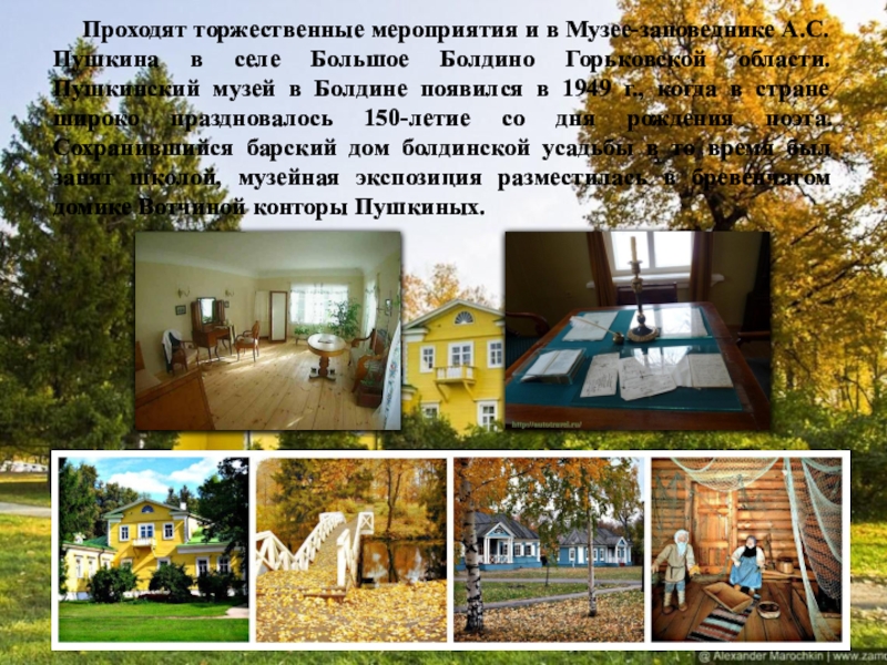 Слайд 9 Проходят торжественные мероприятия и в Музее-заповеднике А.С.