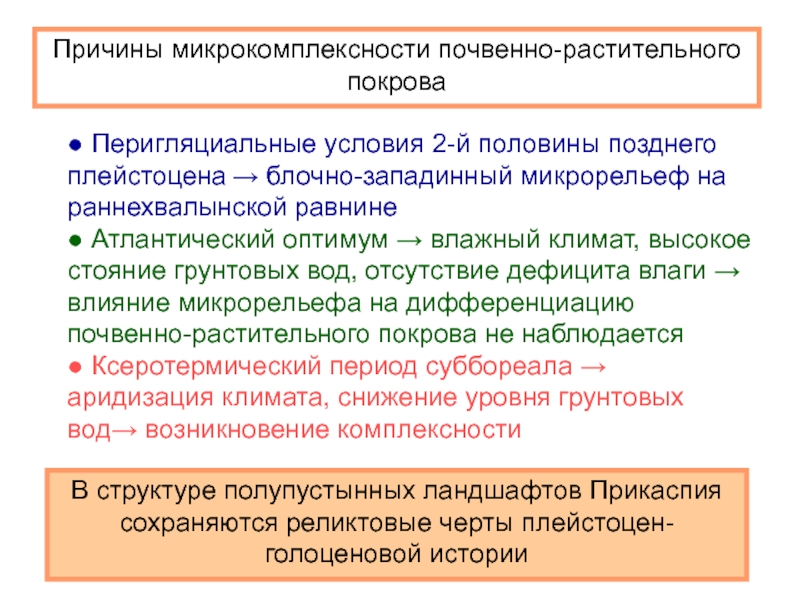 В структуре полупустынных ландшафтов Прикаспия сохраняются реликтовые черты плейстоцен-голоценовой истории