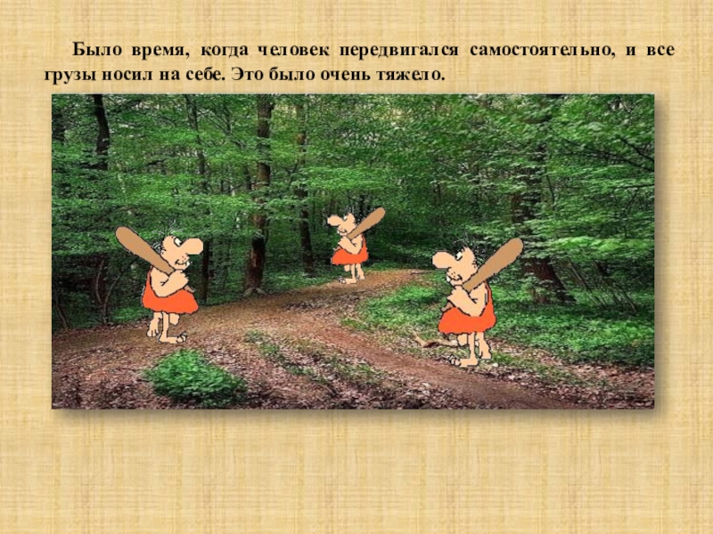 Было время, когда человек передвигался самостоятельно, и все грузы носил на себе. Это было очень тяжело.