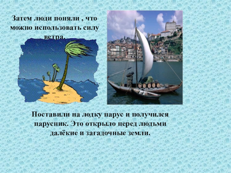 Слайд 5Затем люди поняли , что можно использовать силу ветра.