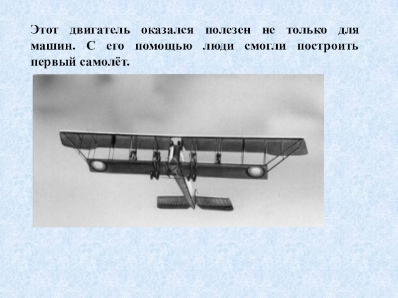 Этот двигатель оказался полезен не только для машин. С его помощью люди смогли построить первый самолёт.