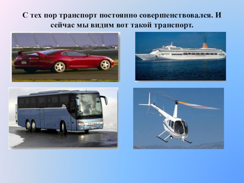 Слайд 11С тех пор транспорт постоянно совершенствовался. И сейчас мы видим