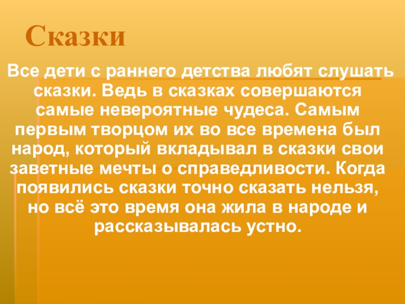 Сказки бывают народные и литературные. Народные сказки не имеют