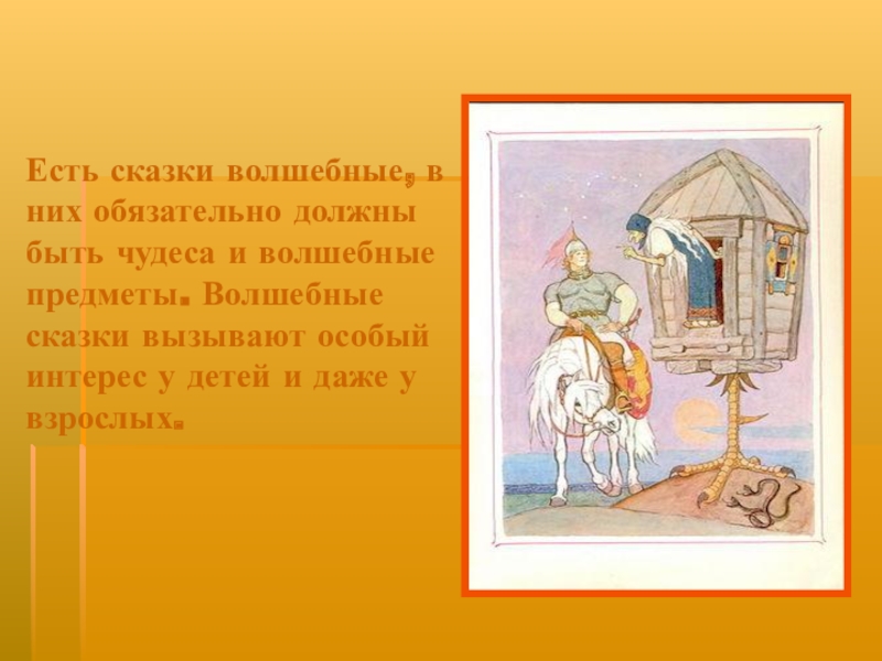Слайд 7Есть сказки волшебные, в них обязательно должны быть чудеса и