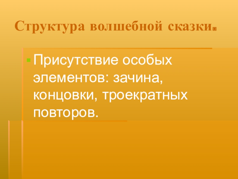 Присутствие особых элементов: зачина, концовки, троекратных повторов.