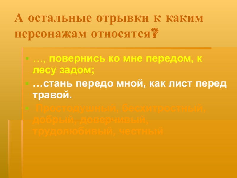 Слайд 11А остальные отрывки к каким персонажам относятся?