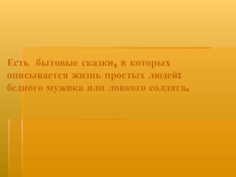 Слайд 6Есть бытовые сказки, в которых описывается жизнь простых людей: бедного