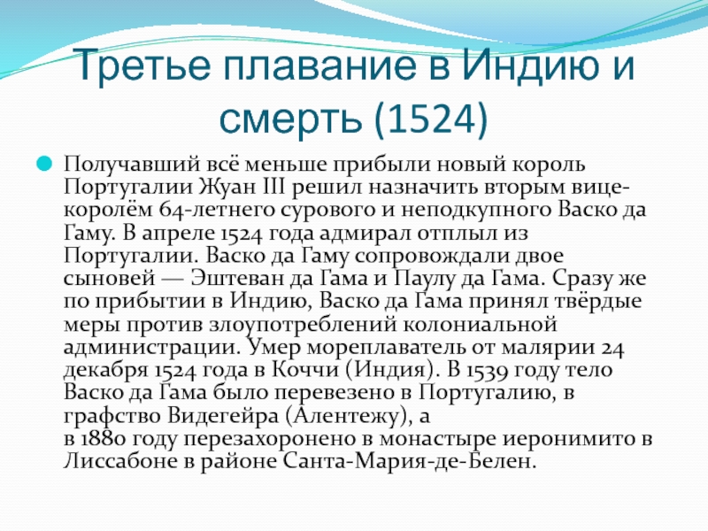 Слайд 10Третье плавание в Индию и смерть (1524)