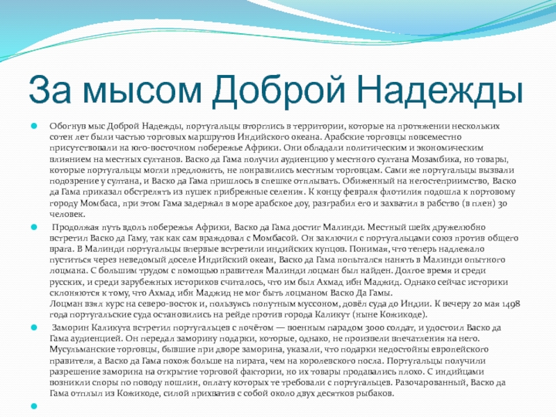 Обогнув мыс Доброй Надежды, португальцы вторглись в