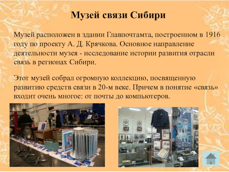 году по проекту А. Д. Крячкова. Основное направление деятельности музея
