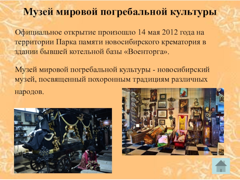 Музей мировой погребальной культуры - новосибирский музей, посвященный похоронным традициям различных народов.