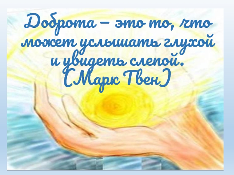 Слайд 2Доброта — это то, что может услышать глухой и увидеть