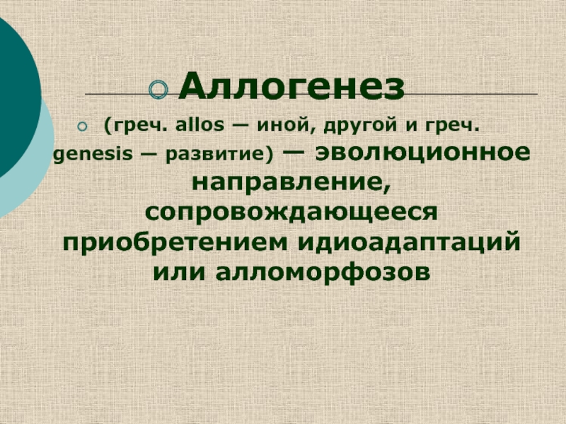 (греч. allos — иной, другой и греч. genesis — развитие) — эволюционное