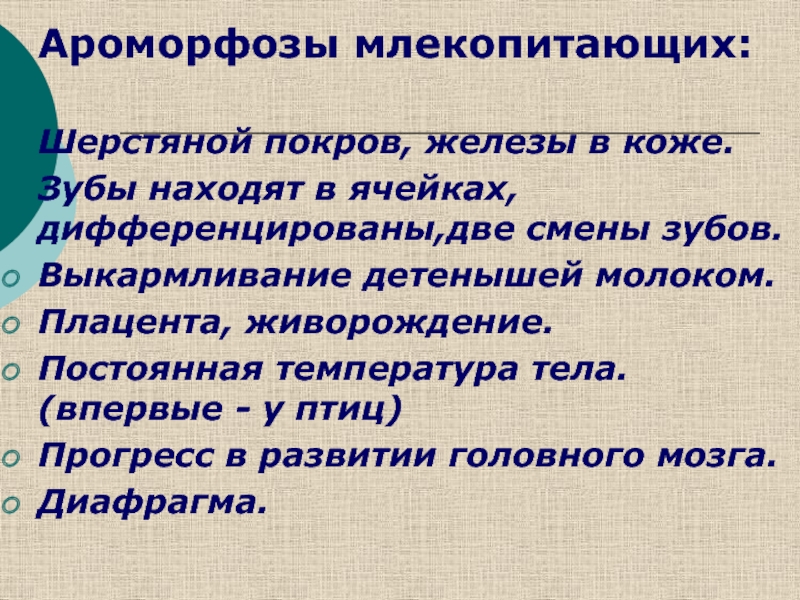 строения и функций органов при сохранении в целом уровня организации предковых форм