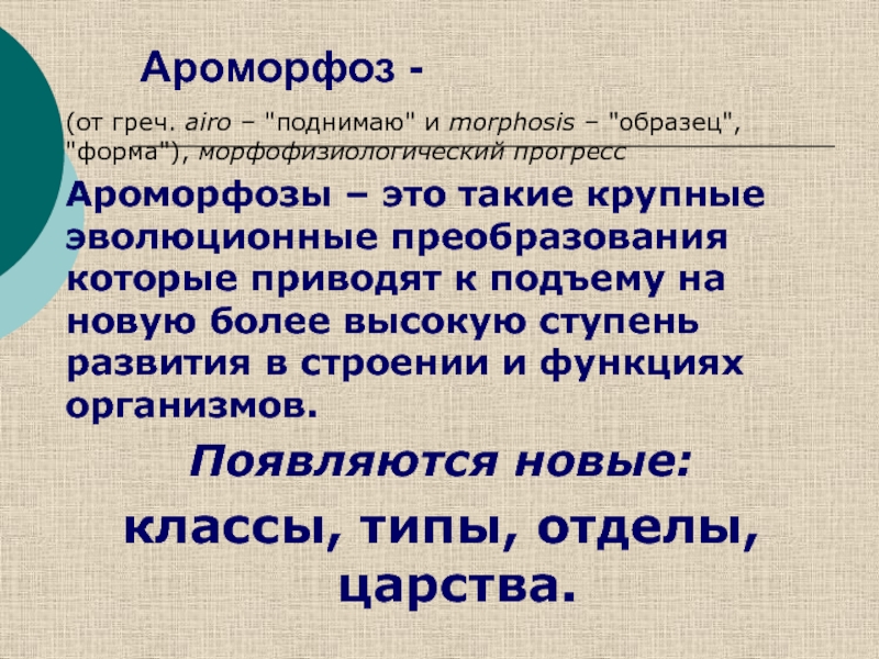 которые приводят к подъему на новую более высокую ступень развития в строении и функциях организмов.
