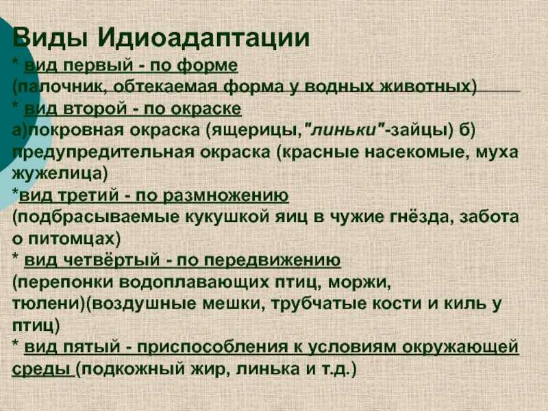 Слайд 26Идиоадаптации приводят к появлению приспособленностей.
