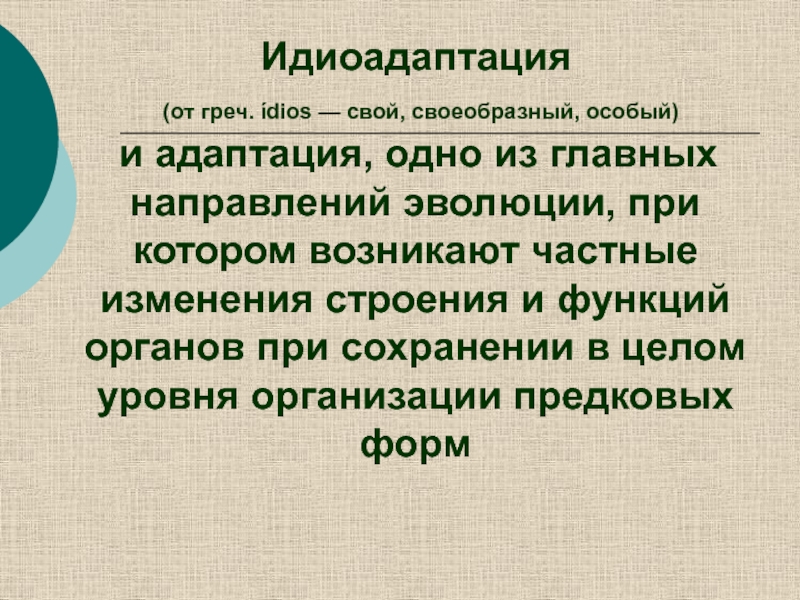 одно из главных направлений эволюции, при котором возникают частные изменения