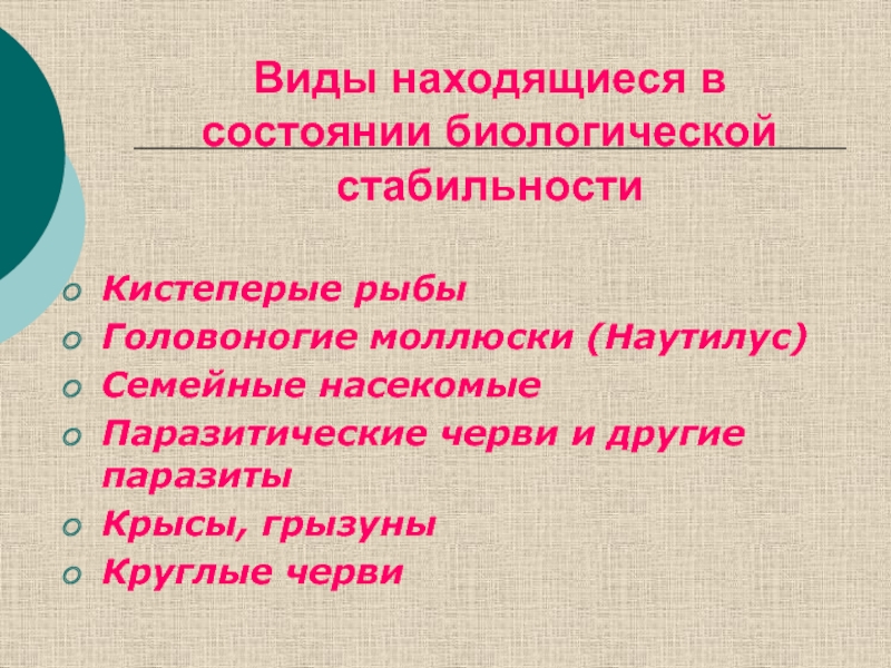 Слайд 11Виды находящиеся в состоянии биологической стабильности
