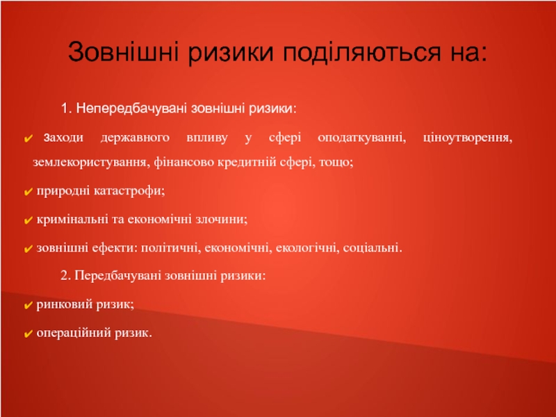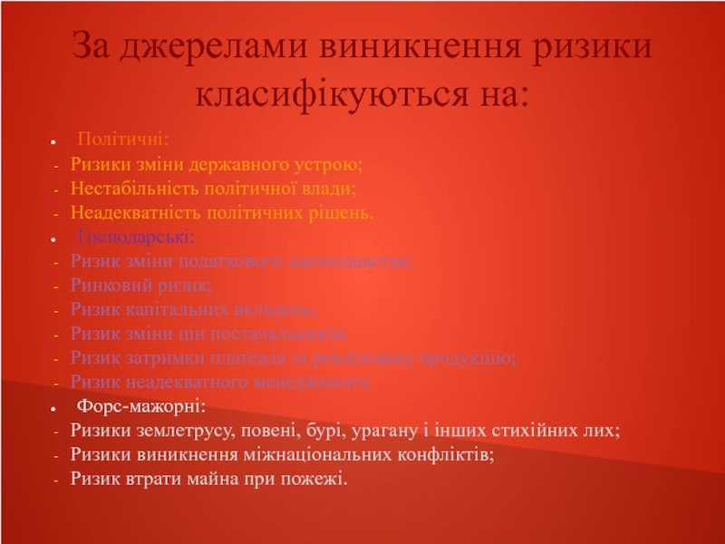 Слайд 5За джерелами виникнення ризики класифікуються на: