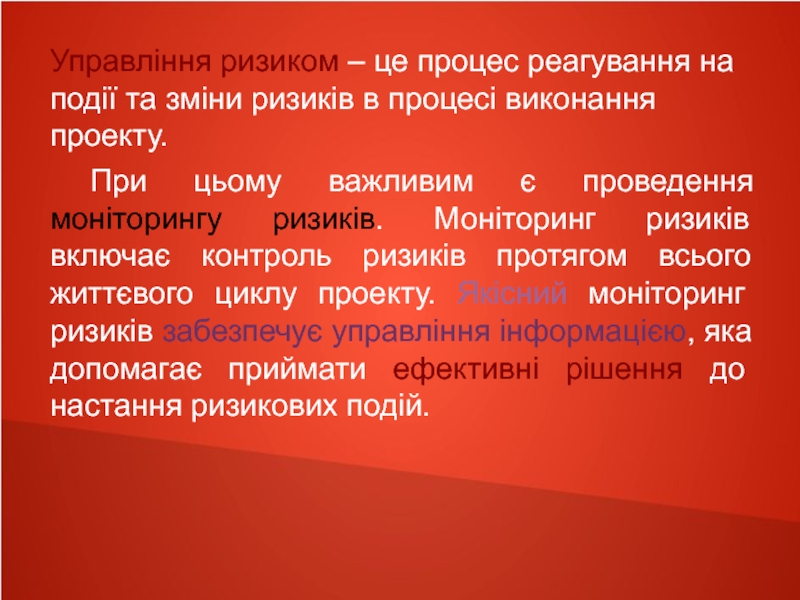 Слайд 3Управління ризиком – це процес реагування на події та зміни ризиків в