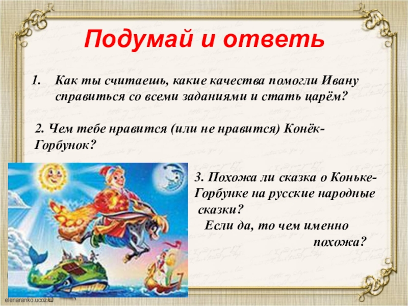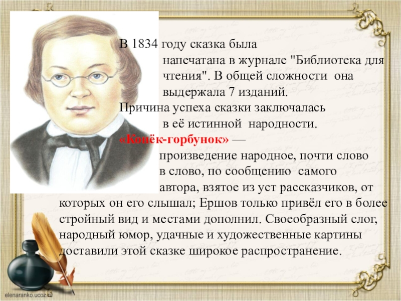 "Конёк-Горбунок", которую Ершов представил ему как курсовую работу. Сказка очень понравилась