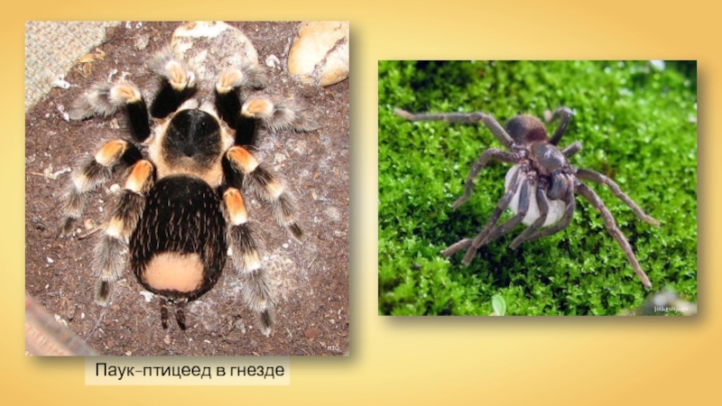 Слайд 6Паук-птицеед в гнезде