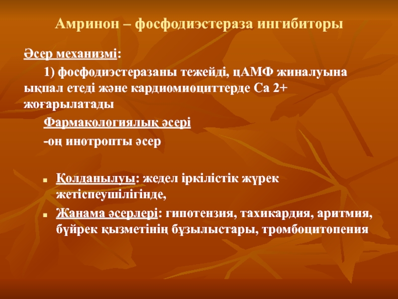 Слайд 24Амринон – фосфодиэстераза ингибиторы