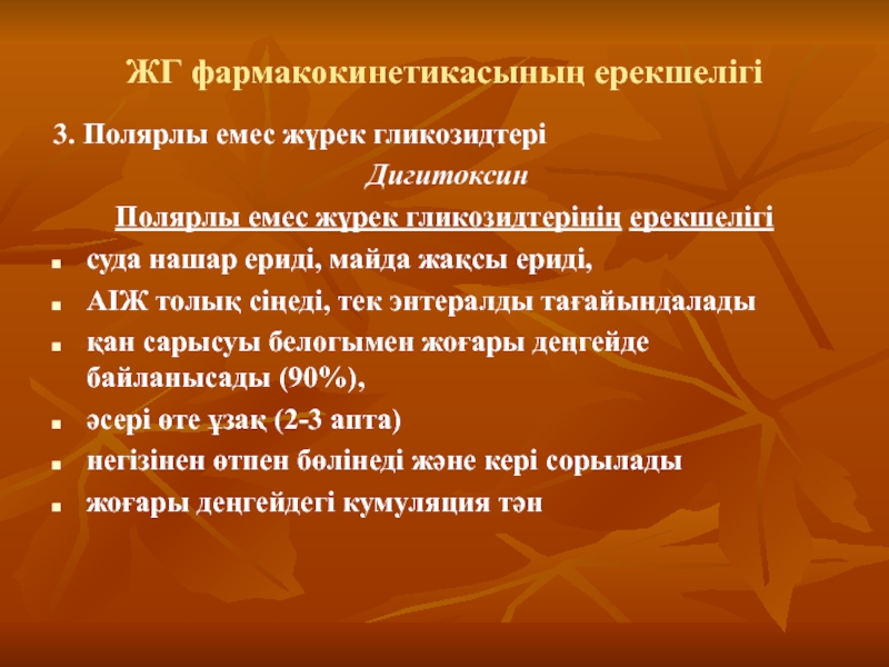 Слайд 21ЖГ фармакокинетикасының ерекшелігі