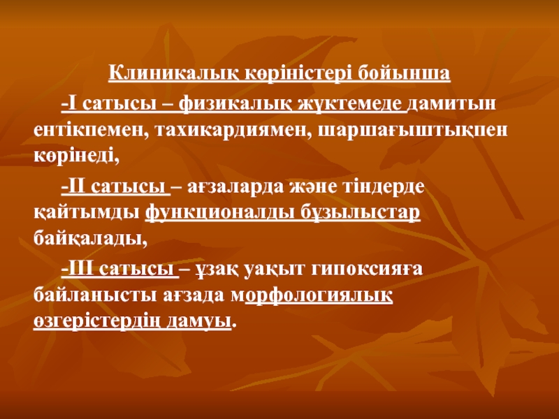 -III сатысы – ұзақ уақыт гипоксияға байланысты ағзада морфологиялық өзгерістердің дамуы.