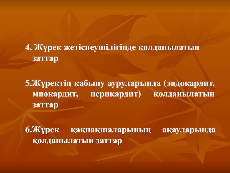 Слайд 3Жүрек қан-тамыр жүйесі патологияларында қолданылатын дәрілік заттар