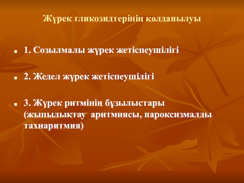 Слайд 22Жүрек гликозидтерінің қолданылуы