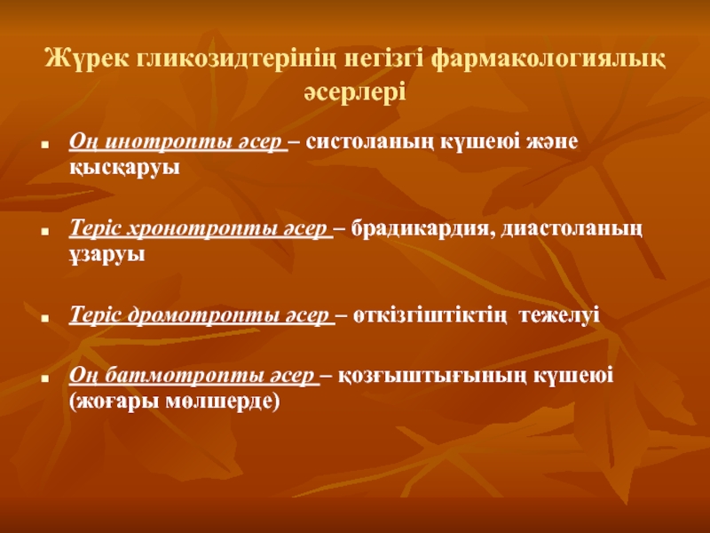 Слайд 14Жүрек гликозидтерінің негізгі фармакологиялық әсерлері