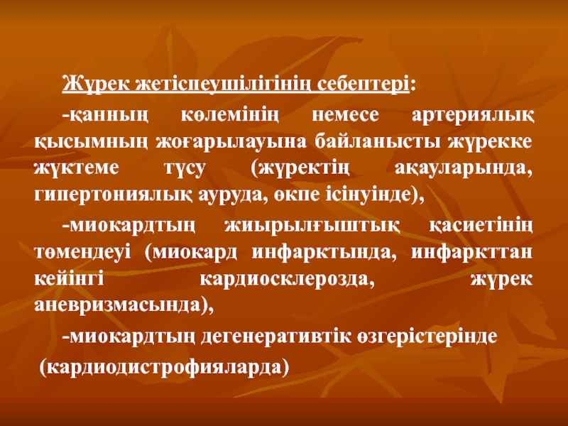 Слайд 6 Жүрек жетіспеушілігінің себептері: