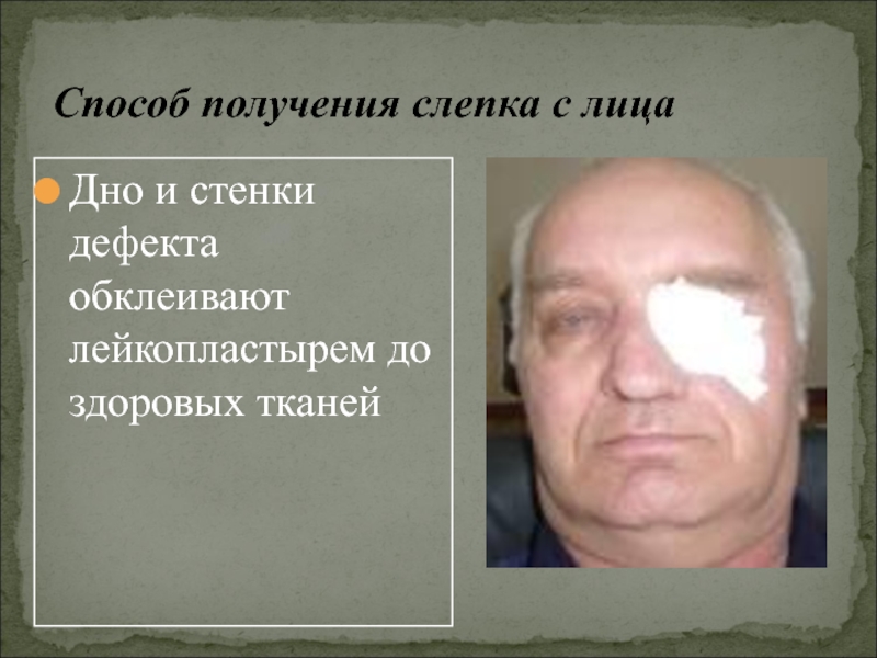 б) модель больного с онкозаболеванием челюстно-лицевой области с стеклом, на которое наносятся ориентиры границы здоровой половины.