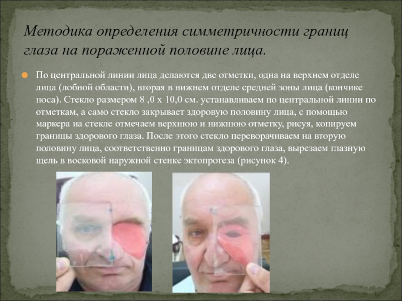 Методика определения симметричности границ глаза на пораженной половине лица.