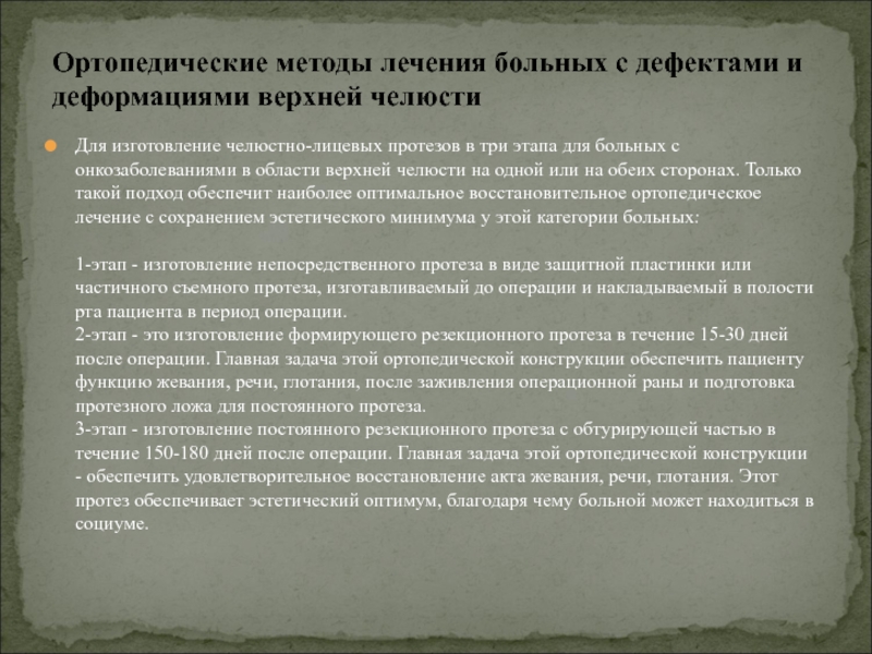 Изготовление и ортопедические методы лечения формирующими протезами.