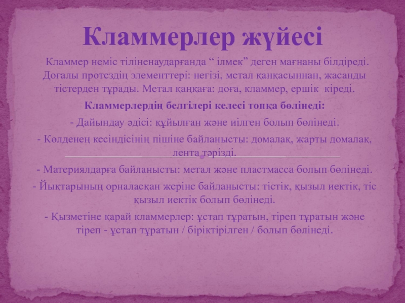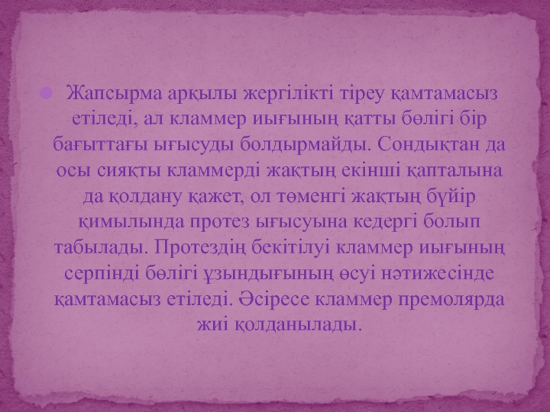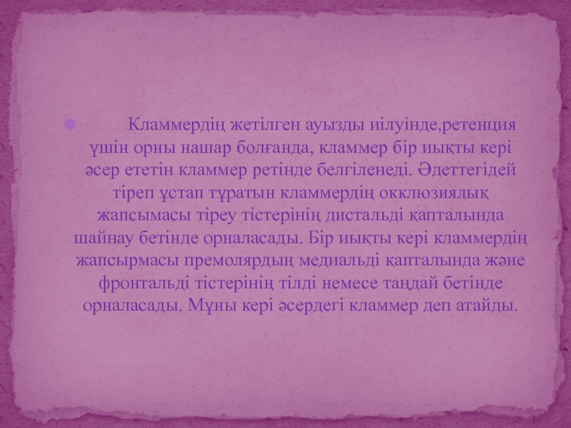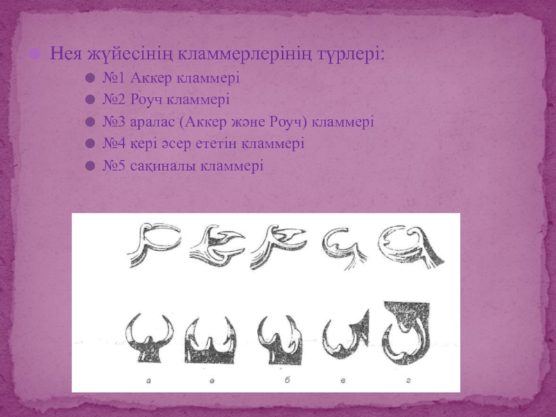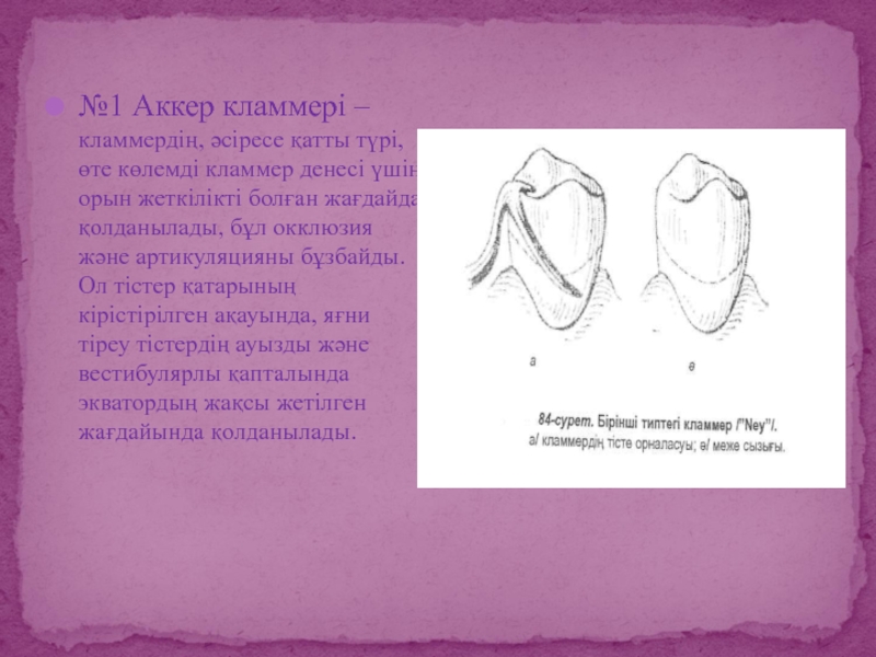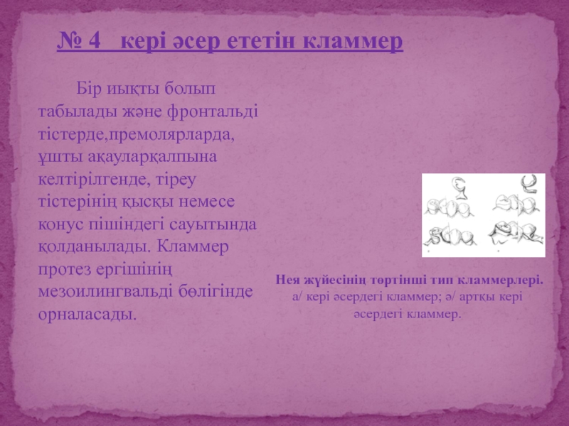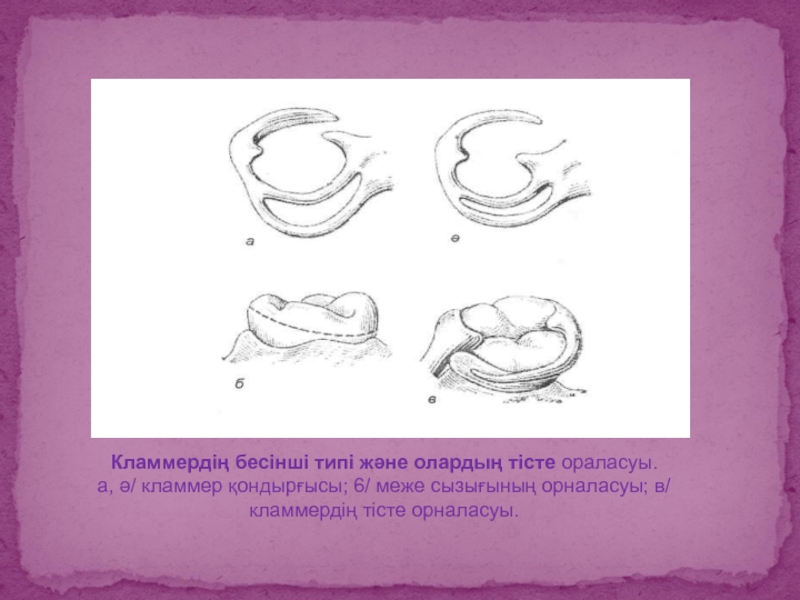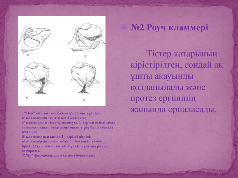 Нея жүйесінің үшінші тип кламмерлері жене олардың тістің вестибуляторлык /а/ және тіл /ә/ қапталынан орналасуы.