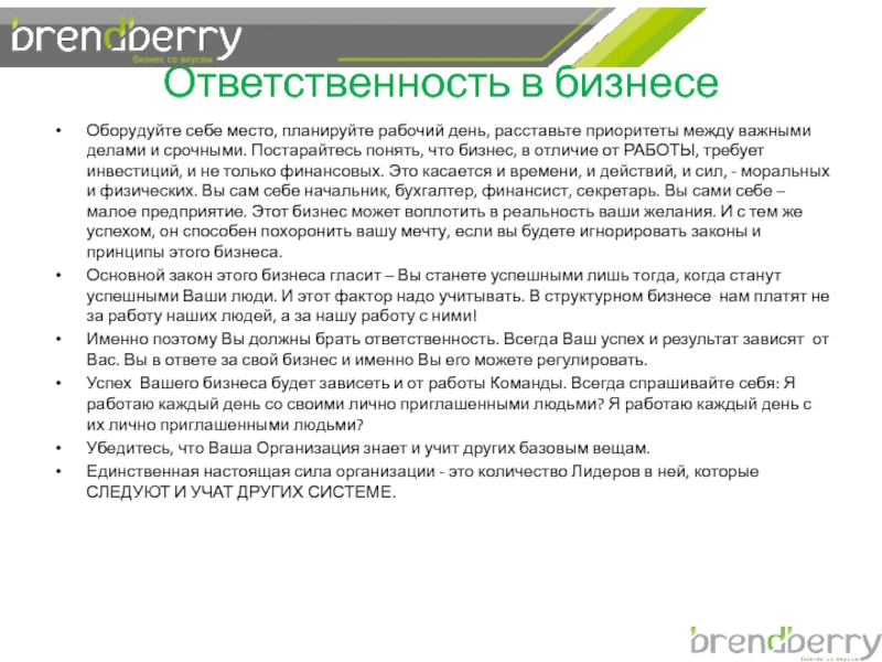 Именно поэтому Вы должны брать ответственность. Всегда Ваш успех и результат зависят от Вас. Вы в ответе за свой бизнес и именно Вы его можете регулировать.