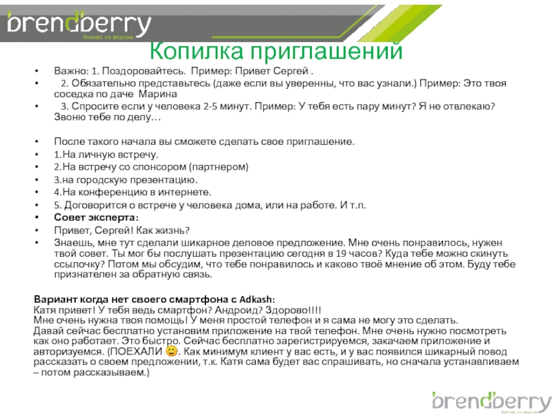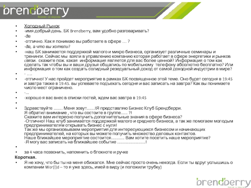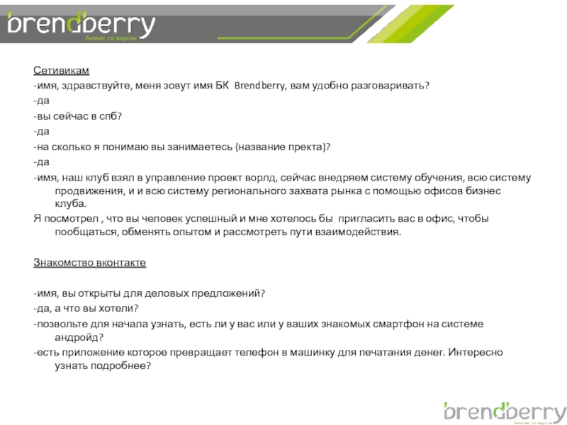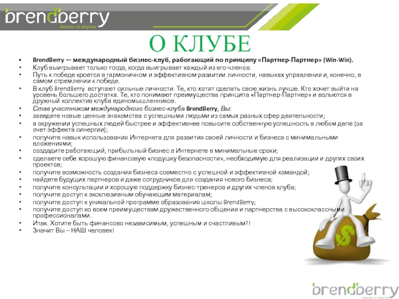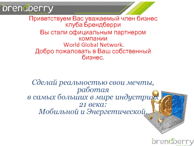 Слайд 2Приветствуем Вас уважаемый член бизнес клуба Брендберри
