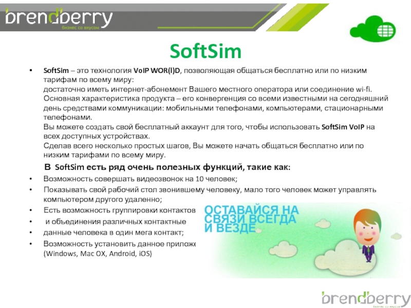 SoftSim – это технология VoIP WOR(l)D, позволяющая общаться бесплатно или по низким тарифам по