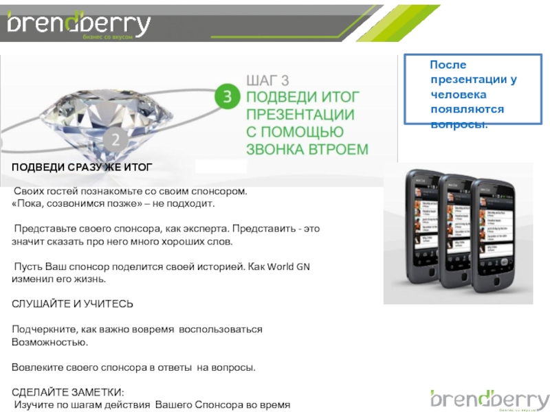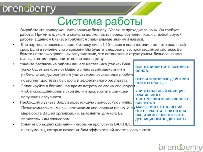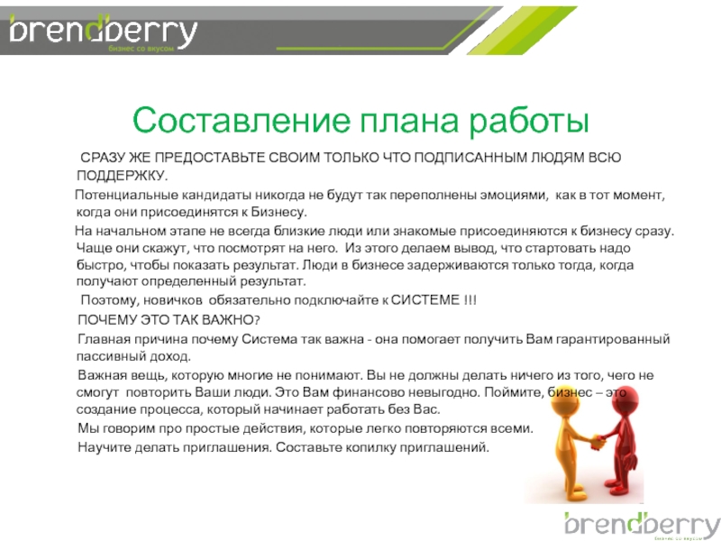 Успех Вашего бизнеса будет зависеть и от работы Команды. Всегда спрашивайте себя: Я работаю каждый день со своими лично приглашенными людьми? Я работаю каждый день с их лично приглашенными людьми?