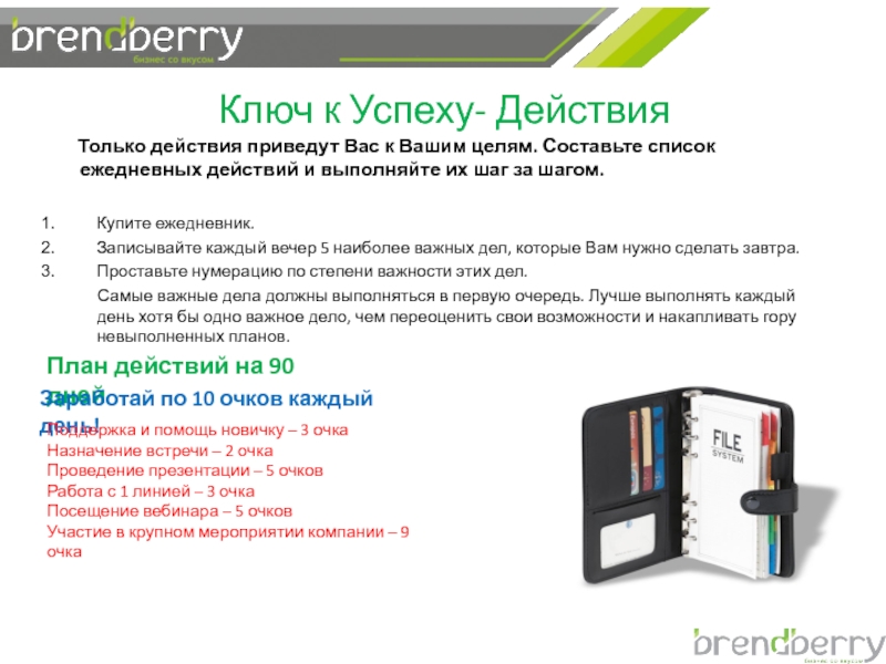 Вас к Вашим целям. Составьте список ежедневных действий и выполняйте